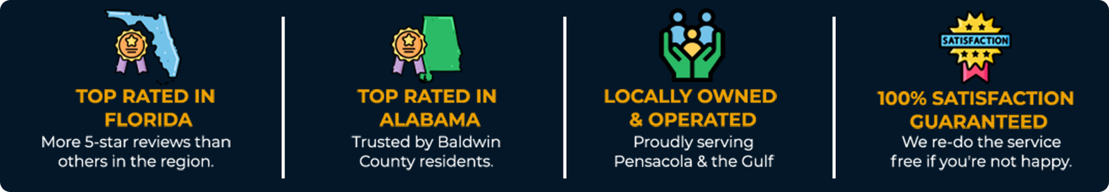 We are locally owned in Pensacola, proudly serving the Florida & Alabama Gulf Coast. Fast, friendly service you can trust.